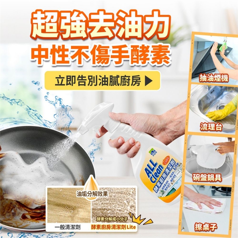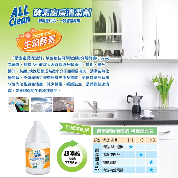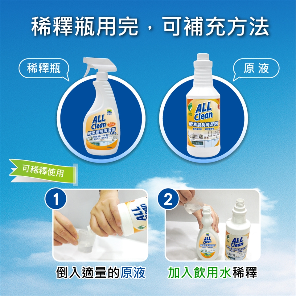 超濃縮可稀釋使用,減少瓶瓶罐罐。 可同時清洗排油煙機的清潔劑。