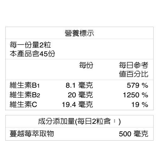 ■添加維生素C、B1、B2等營養素,可促進新陳代謝,私人保養必備。