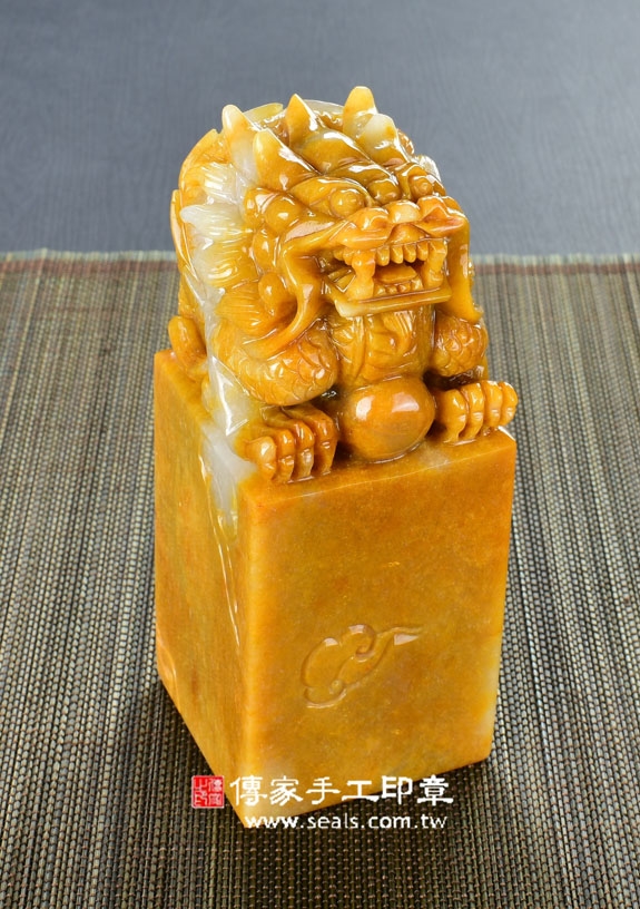 1. 傳家手工印章嚴選高級「黃玉神龍抱珠神獸章官印大印大開運印章、神明印章、廟章、官印、主管印鑑」。黃玉的硬度大約是7度,是常用的印材之一。