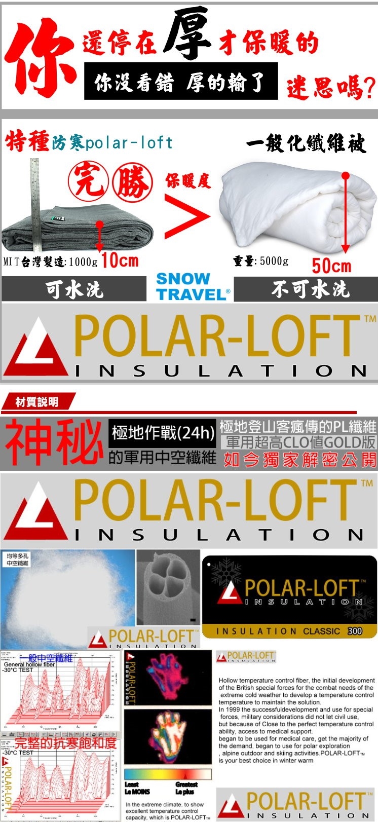 *使用台製POLAR-LOFT極地中空纖維550G/M2CP-24H全防風超保暖雙層軍規超薄超保暖