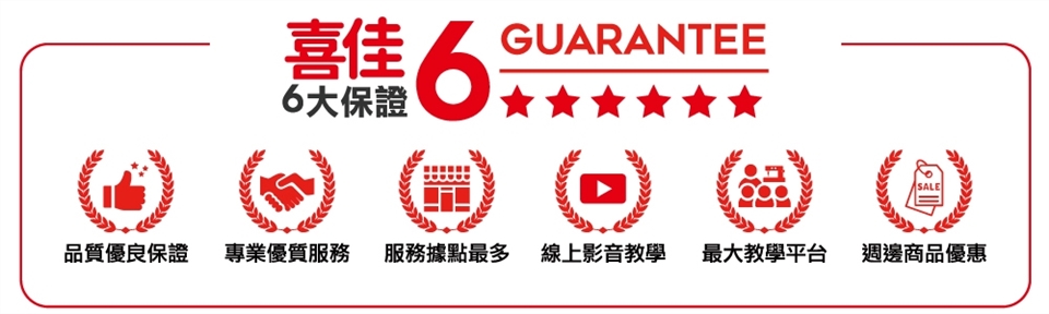 全台喜佳門市,提供售後服務及課程教學。(詳情請參照券之背面說明)