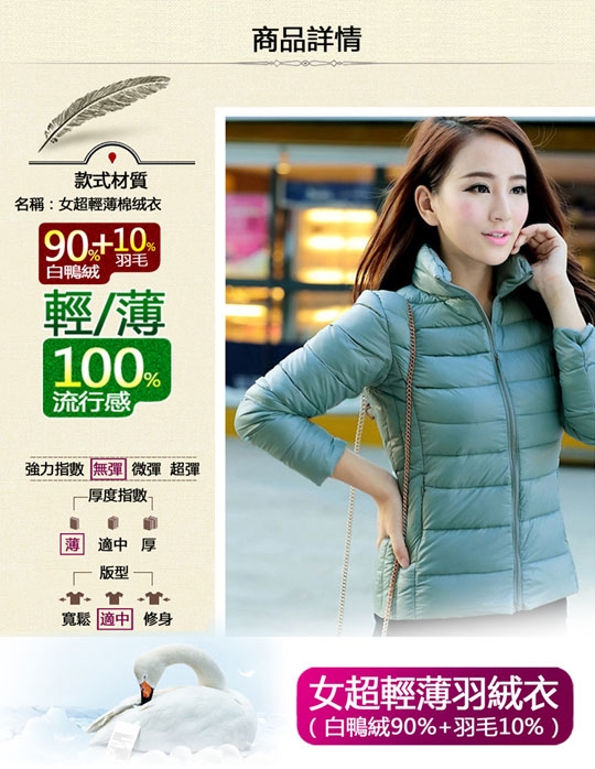 材質:100%白絨(白鴨絨90%+羽毛10%)
