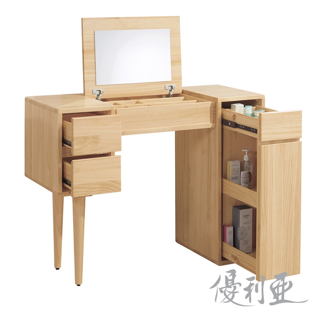 - 抽屜採全實木材質,靜音鋼珠滑軌