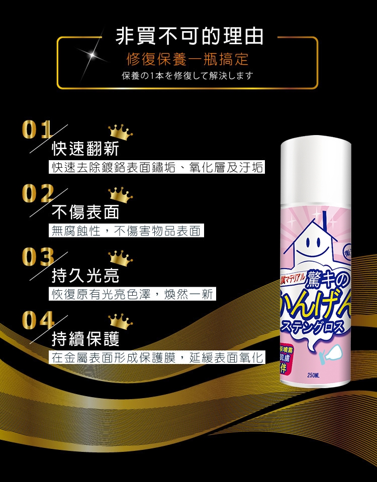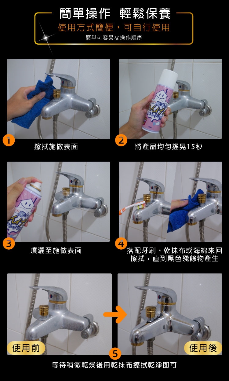 1.將預還原之表面擦拭乾淨,搖晃產品約15秒後均勻噴灑於表面上。