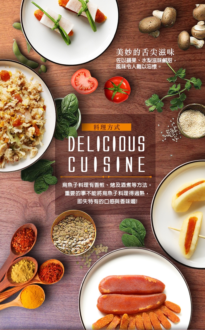 高級烏魚子料理方式。