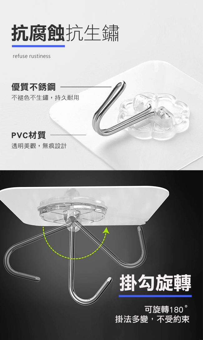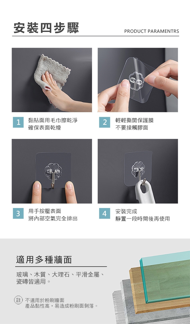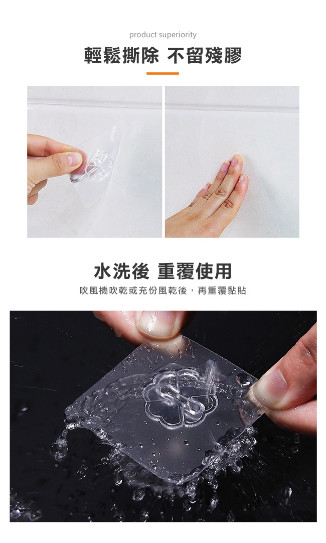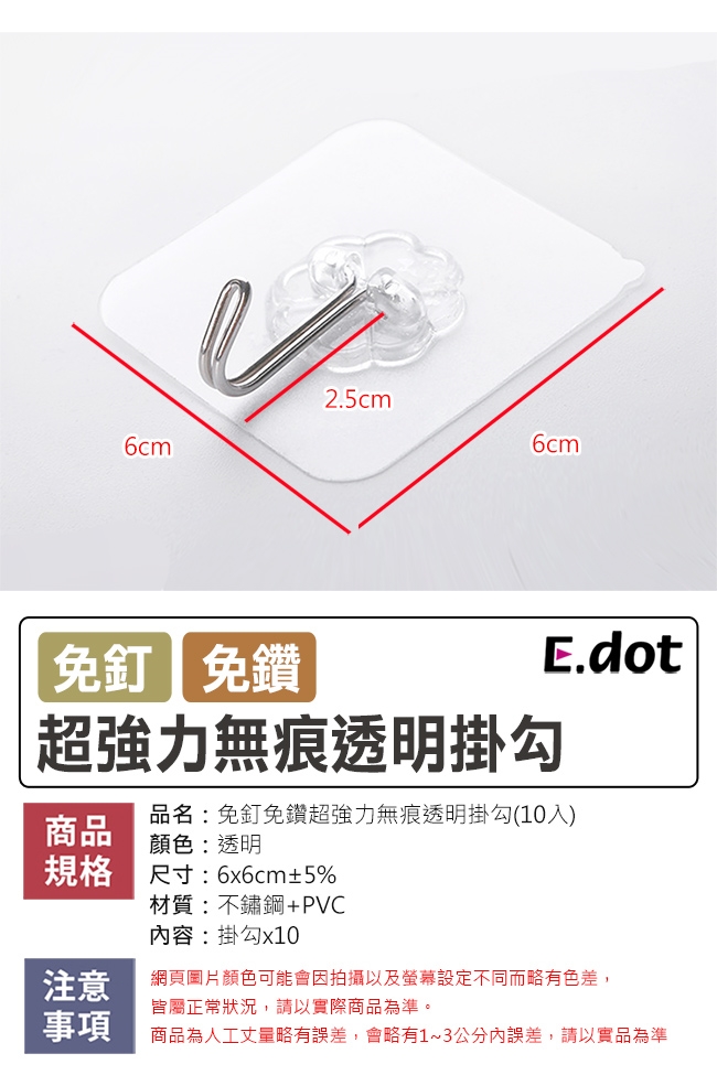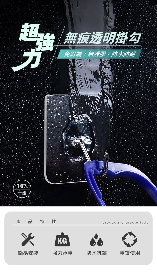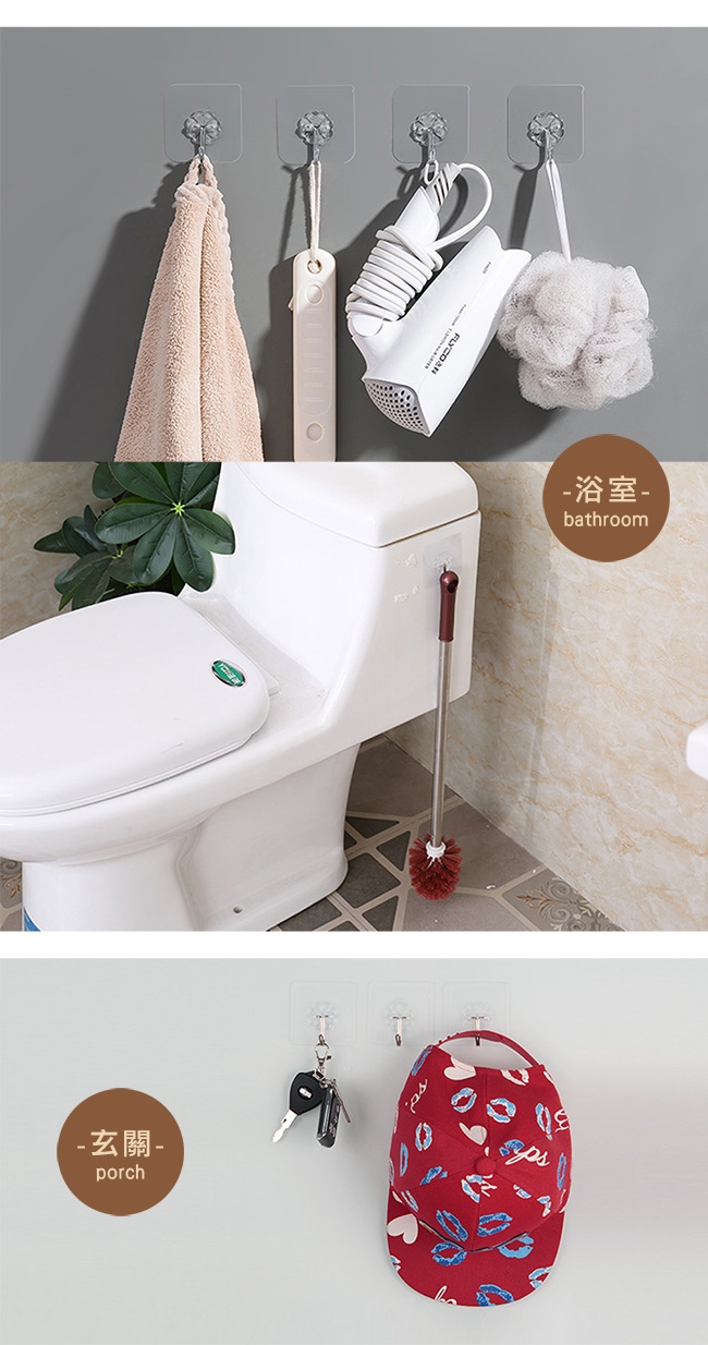 ◆ 商品名稱:免釘免鑽超強力無痕透明掛勾(10入)