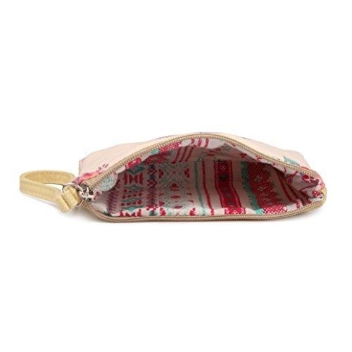 【Love 21】2019女時尚智能性女孩圖騰米黃色帆布手腕錢包