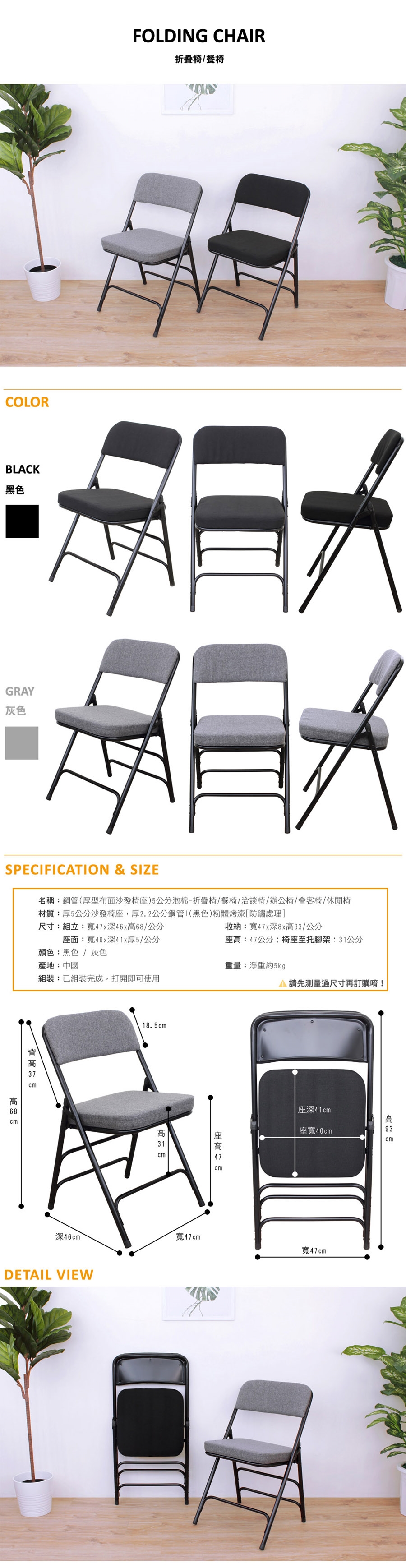 ◆椅座高度:高47公分 - 可承重力約100公斤。