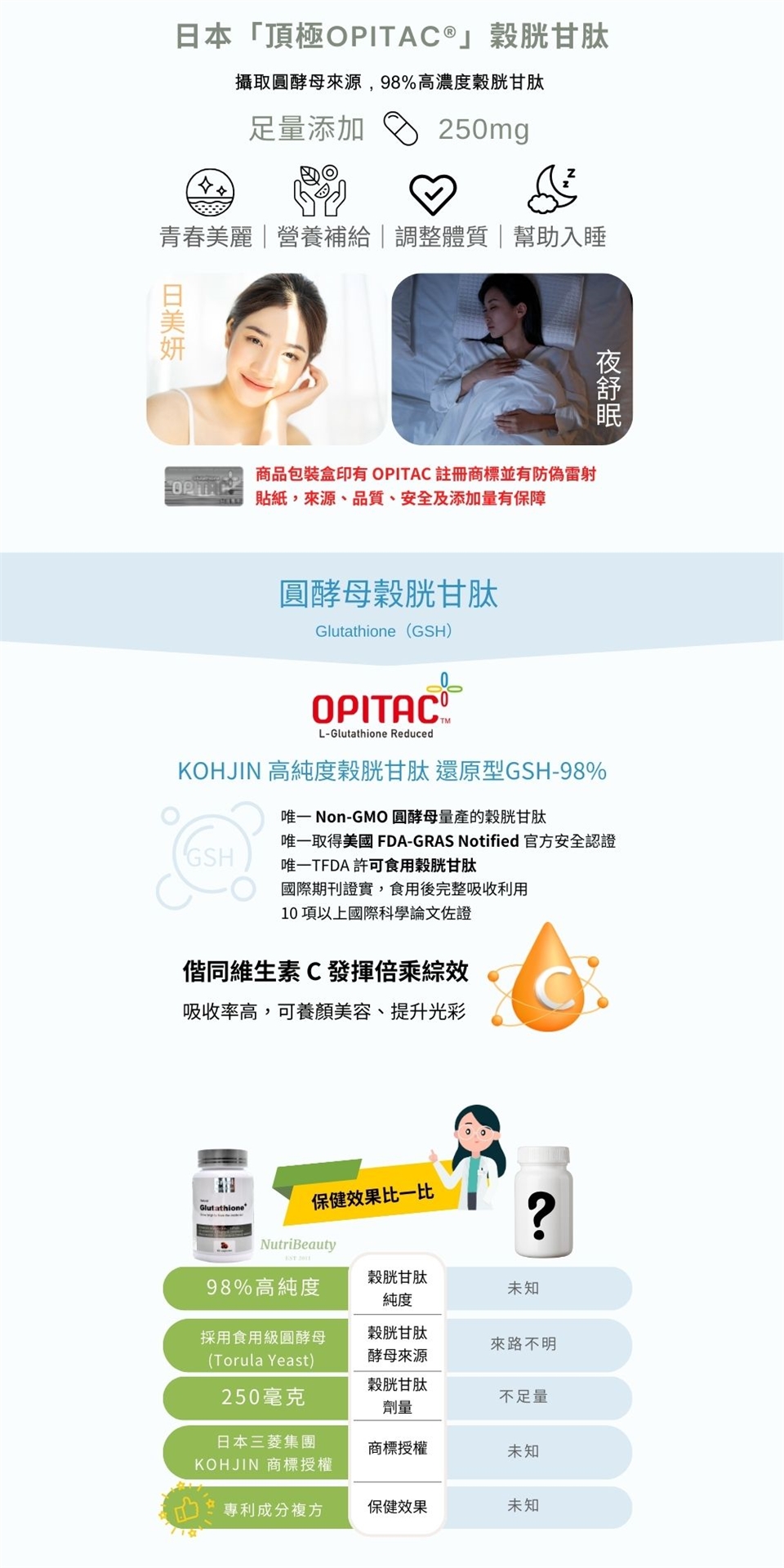 ✔ 維生素C —— 幫助穀胱甘肽穩定性,提高營養利用率。