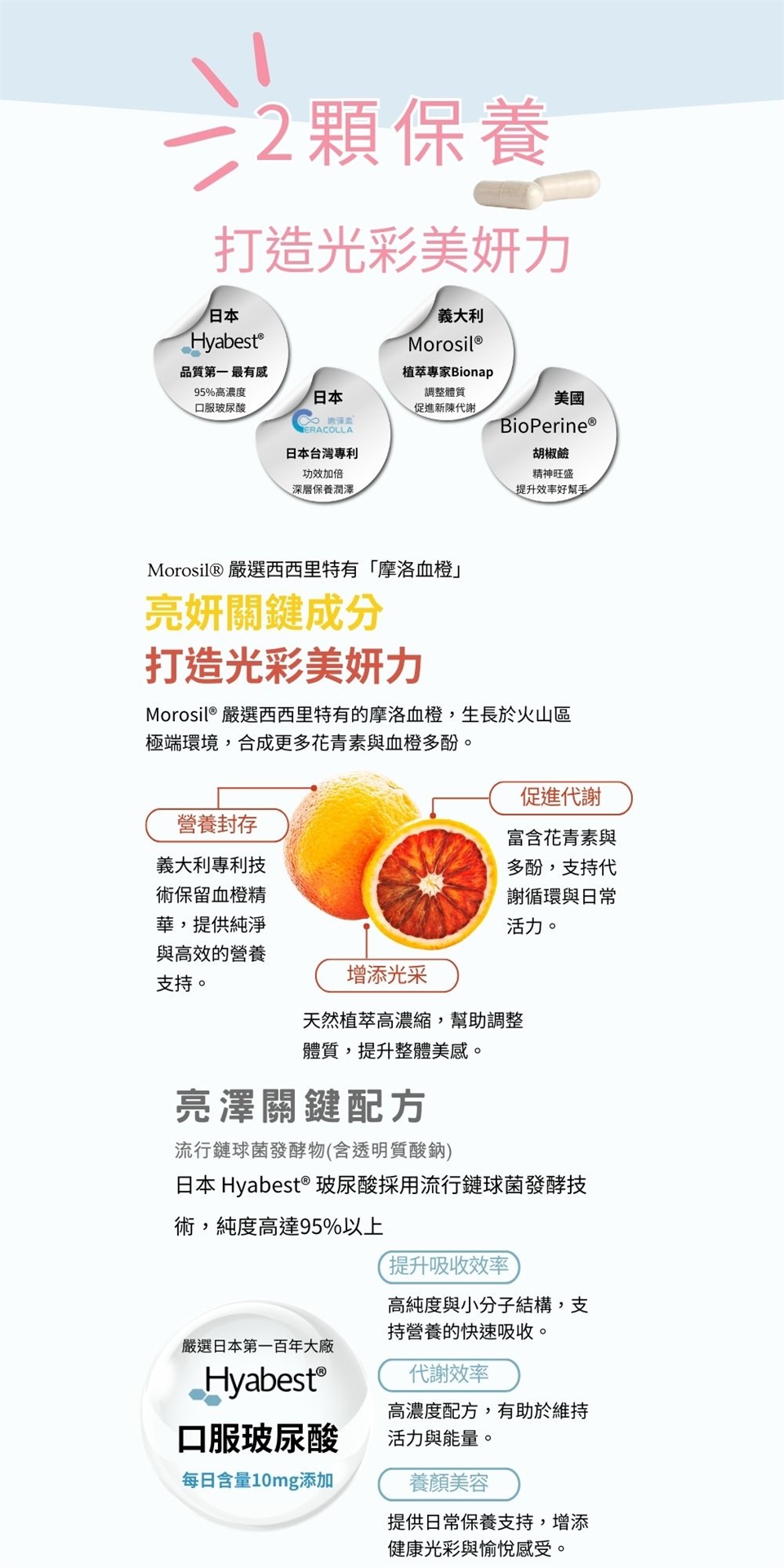 ✔ 玻尿酸 + 賽洛美 —— 促進穀胱甘肽的代謝效率,協同作用提升亮能管理。