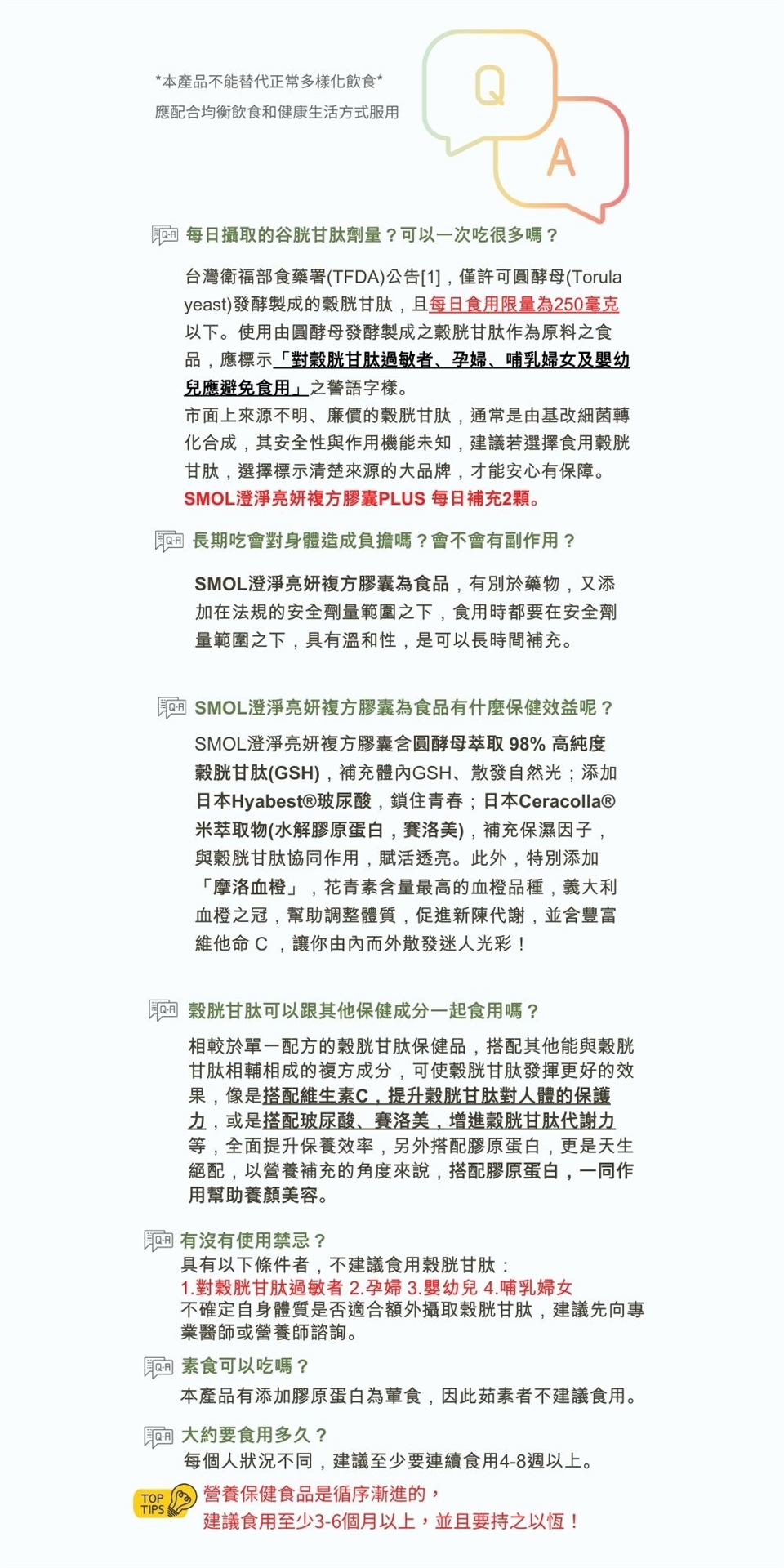 2. 對穀胱甘肽過敏者、孕婦、哺乳婦女及嬰幼兒應避免食用。
