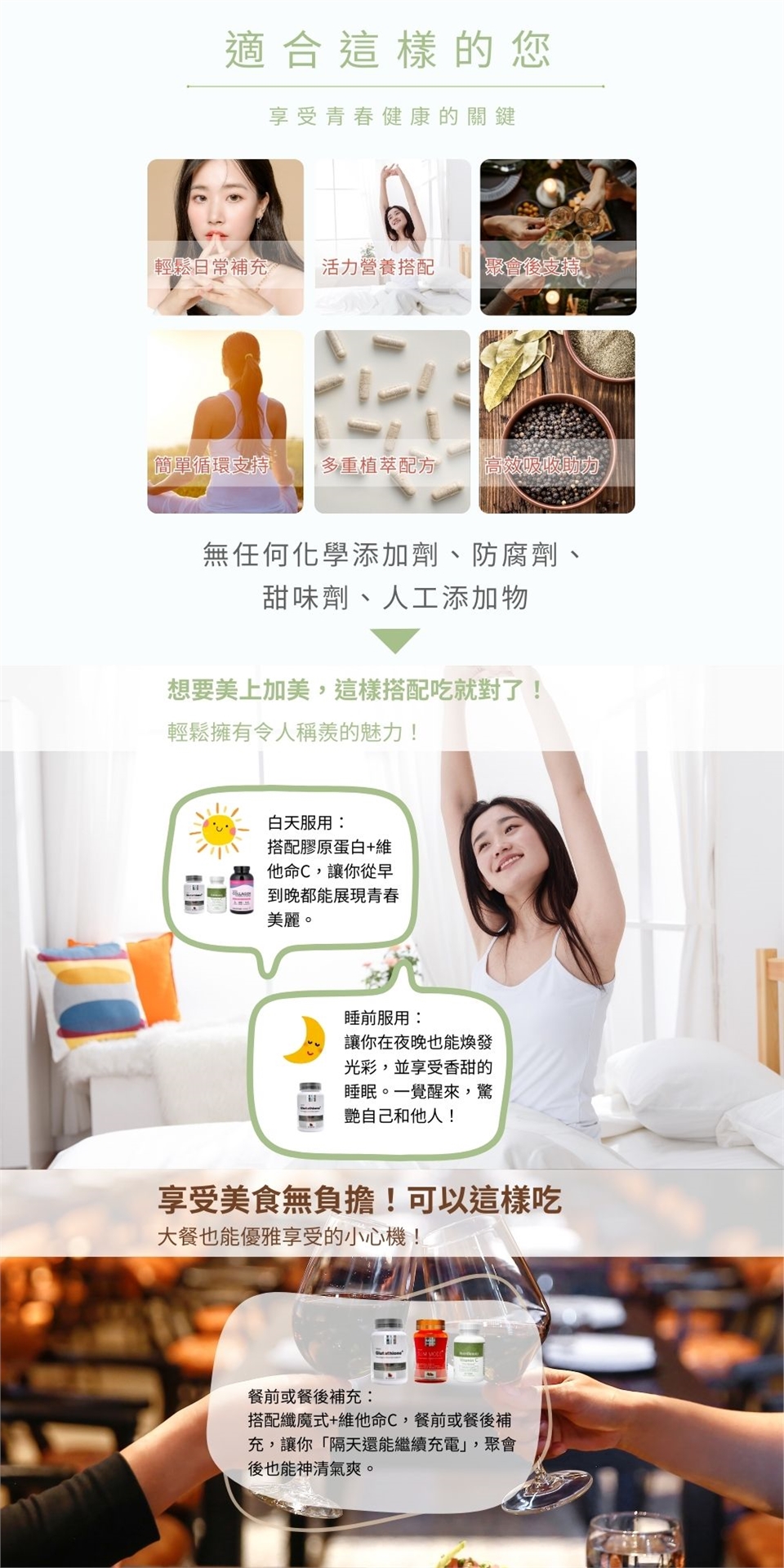 ✔ 膠原蛋白 —— 天然絕配,幫助補充養顏營養,打造由內而外的亮妍光采。