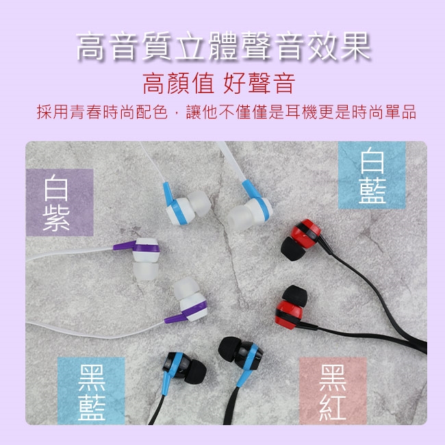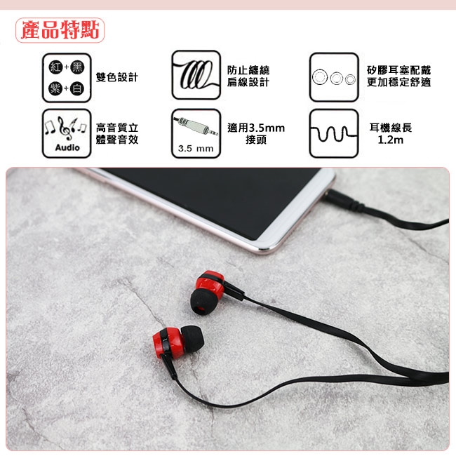 商品名稱:【LIBERTY利百代】雙色渲染-入耳式防纏繞扁線立體聲音效耳機 LB-1518