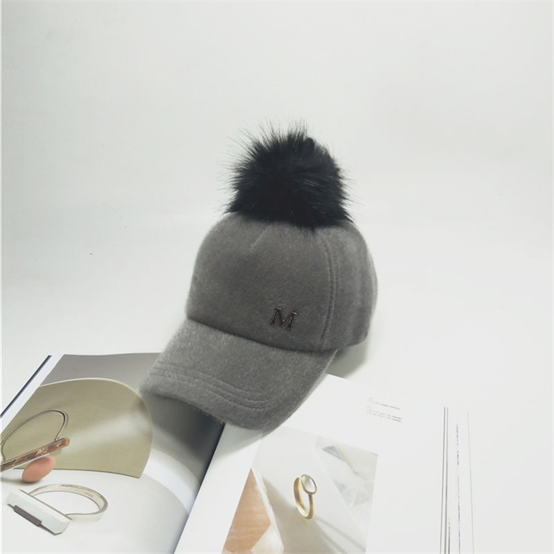 A款字母贴标皮草毛球棒球帽(黑色/ 灰色/粉色) 此款毛球可拆式