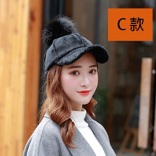 C款 羔羊绒保暖棒球帽 卡其/黑/粉色