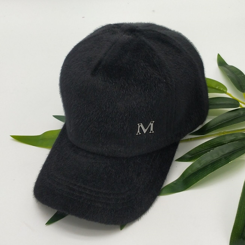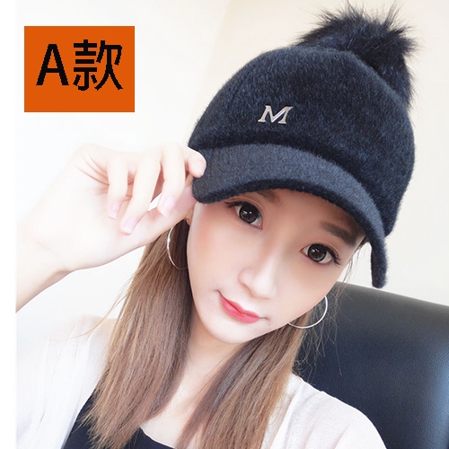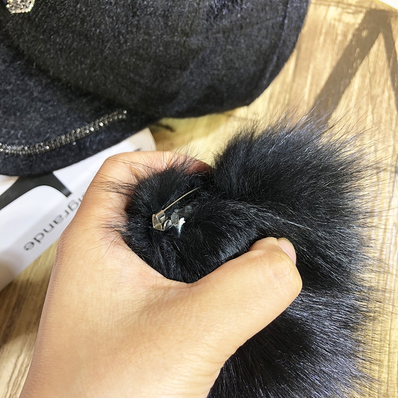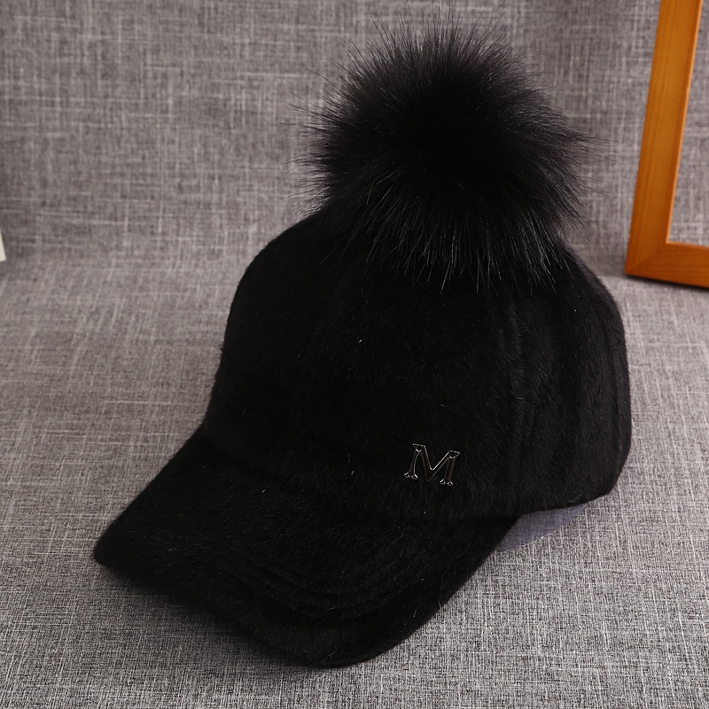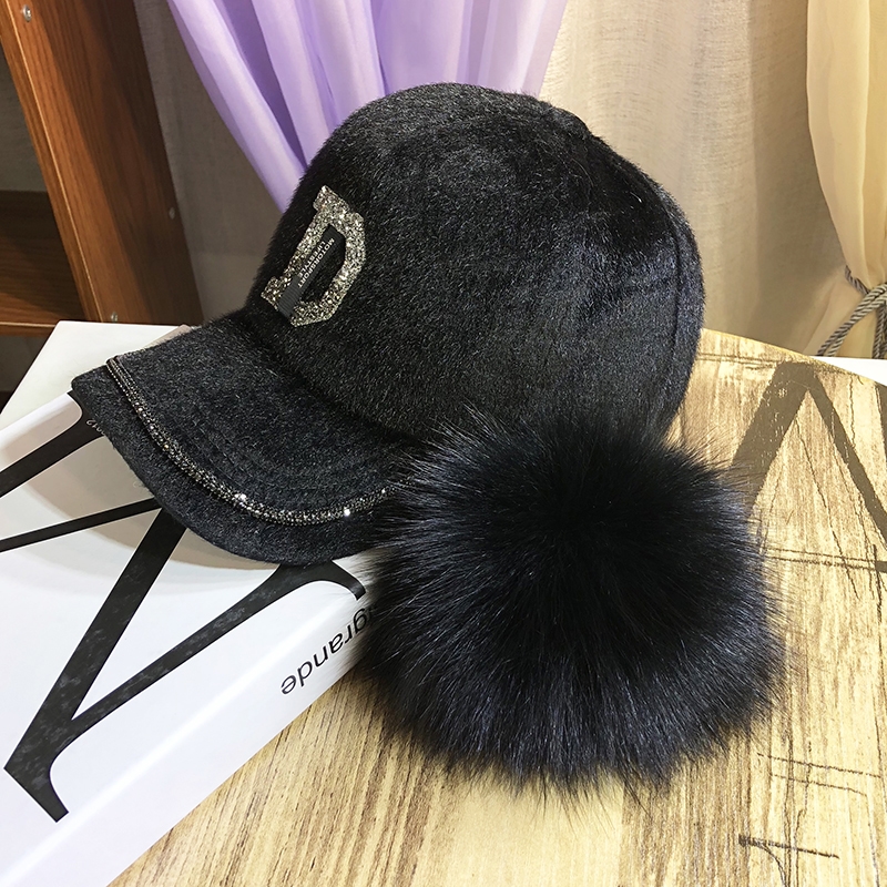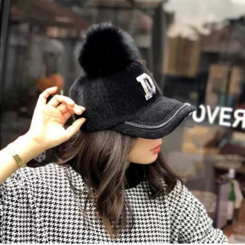 B款 皮草毛球棒球帽(黑色/ 白色) 此款毛球可拆式
