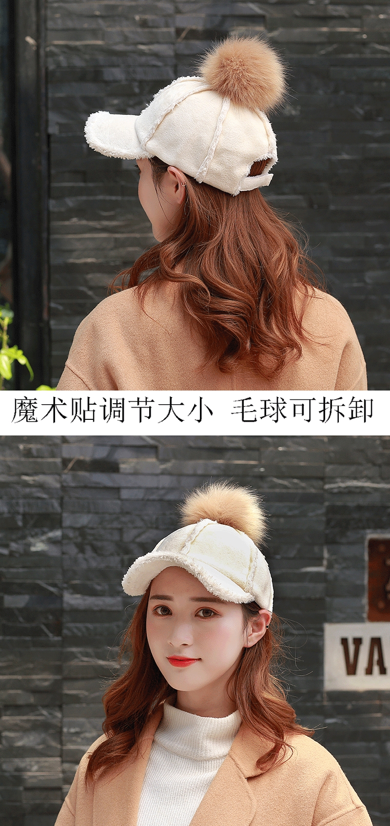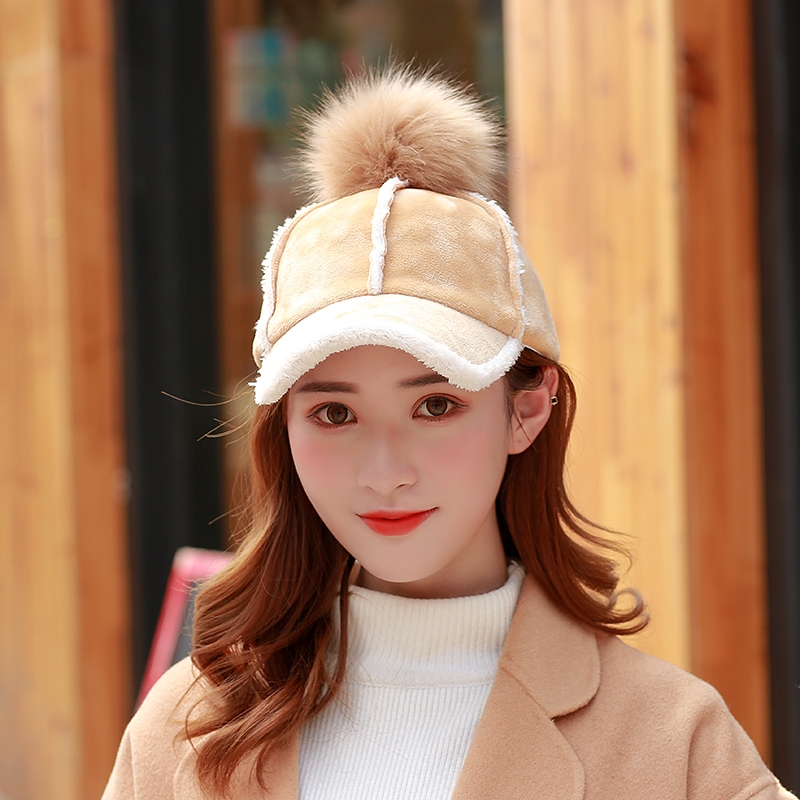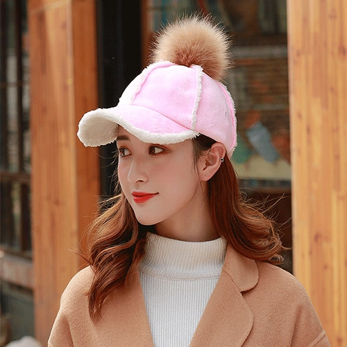 C款 羔羊绒保暖棒球帽 卡其/黑/粉色 此款毛球可拆式