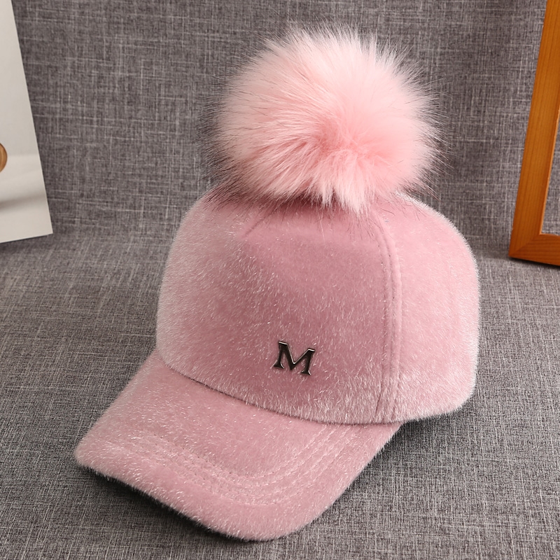 A款 字母贴标皮草毛球棒球帽(黑色/ 灰色/粉色) 此款毛球可拆式