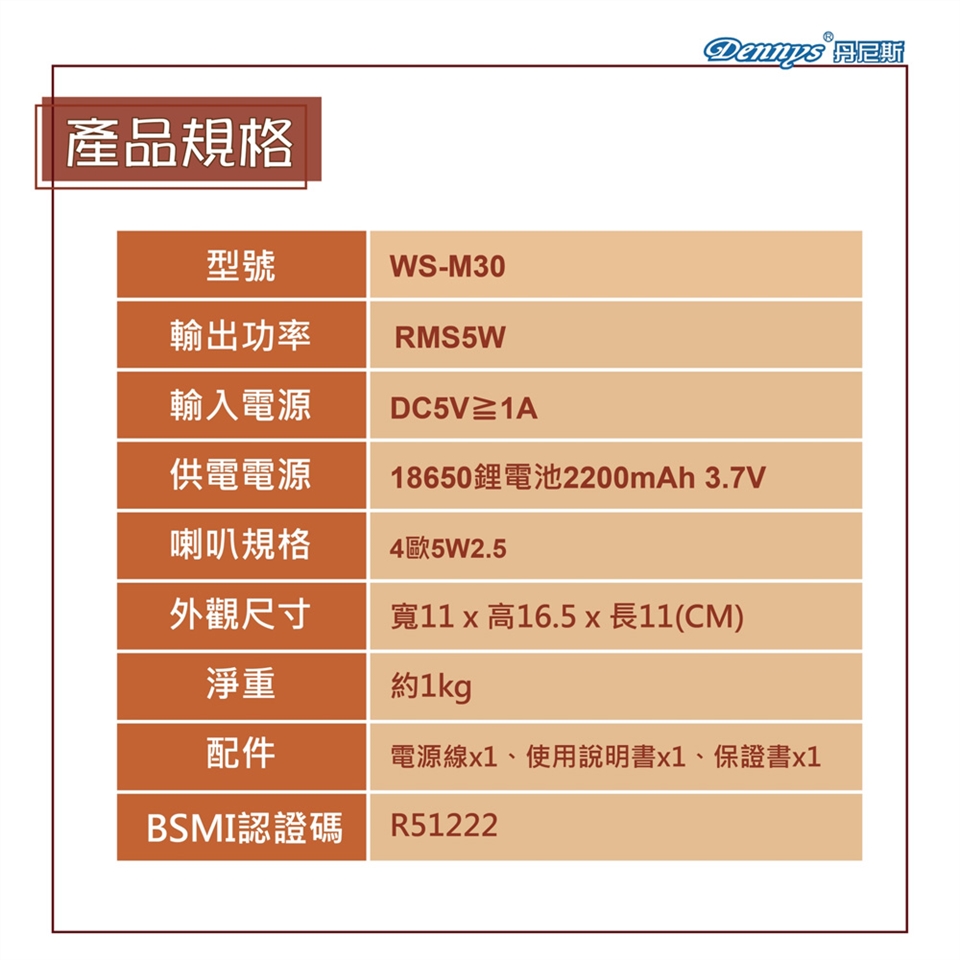 ‧電源:DC(5V 1000mA)USB充電、18650充電式2200mAh鋰電池。