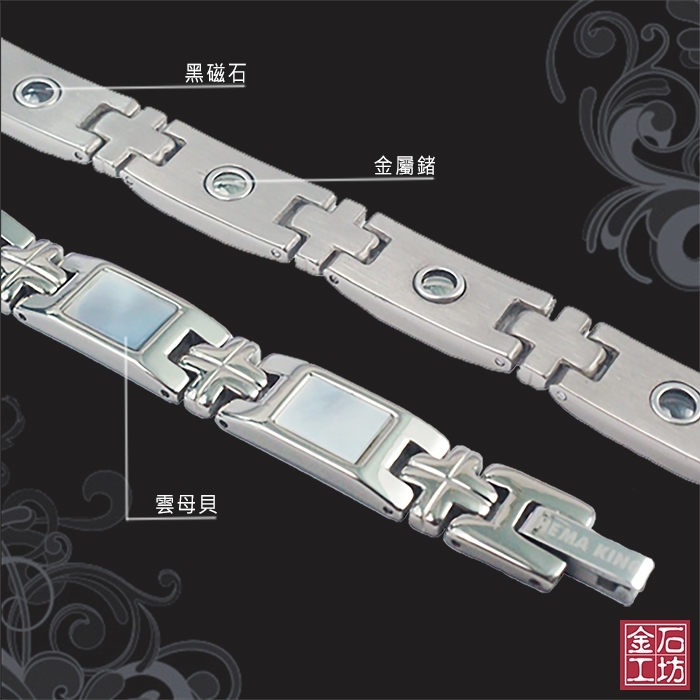 具有磁性黑膽石是保磁公司研發獨特的技術,加工成寶石般光澤亮麗、永不褪色,有黑鑽石的美稱。