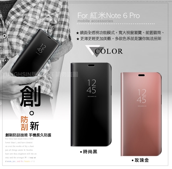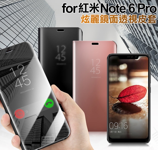 AISURE for 紅米 Note 6 Pro 炫麗鏡面透視皮套