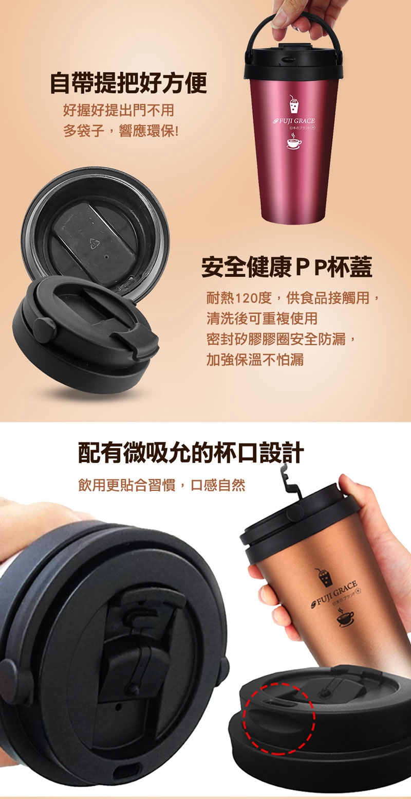 ◆杯身超質感、杯蓋提把式設計兼具響應環保。