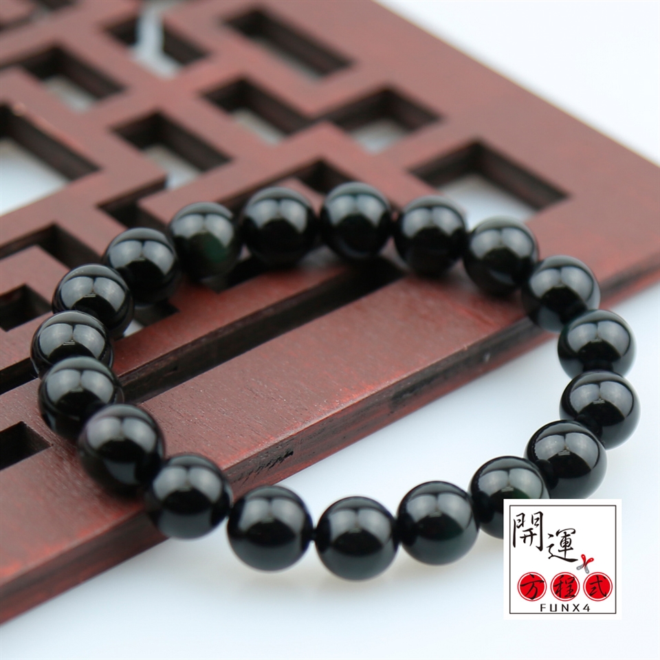 1彩虹眼黑曜石的能量非常強勁有力,極具避邪化煞之功效;通常出入醫院、墓地等負能量重的場合佩戴彩虹眼黑曜石是非常有作用的,它的磁場能量極具吸納性,能將人體帶回的負性能量吸納掉;
