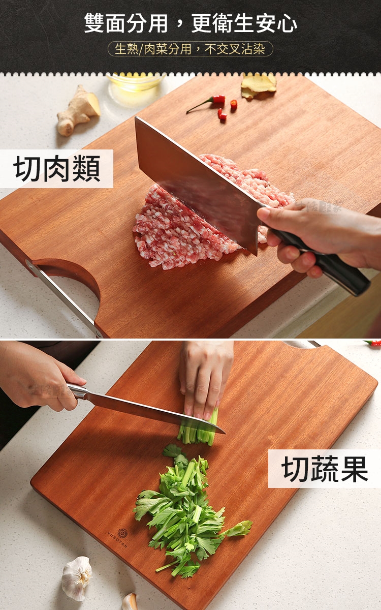 ◆雙面都可使用,生熟食類或肉類蔬果類可分開使用,更好清理。