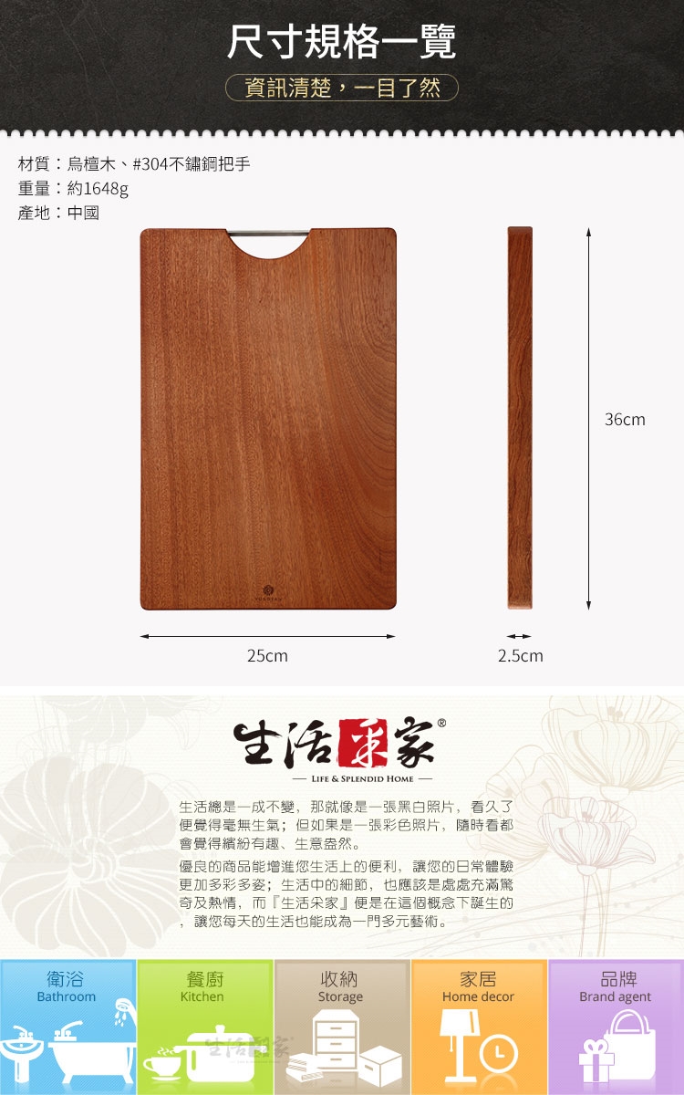 2.材質:本體-烏檀木;把手-#304不鏽鋼
