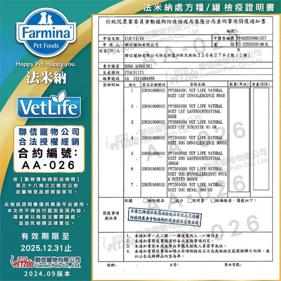 初次使用法米納全系列主食罐時,建議先與原飲食混合食用,以至少7日逐漸轉換,以免寵物腸胃不適應。