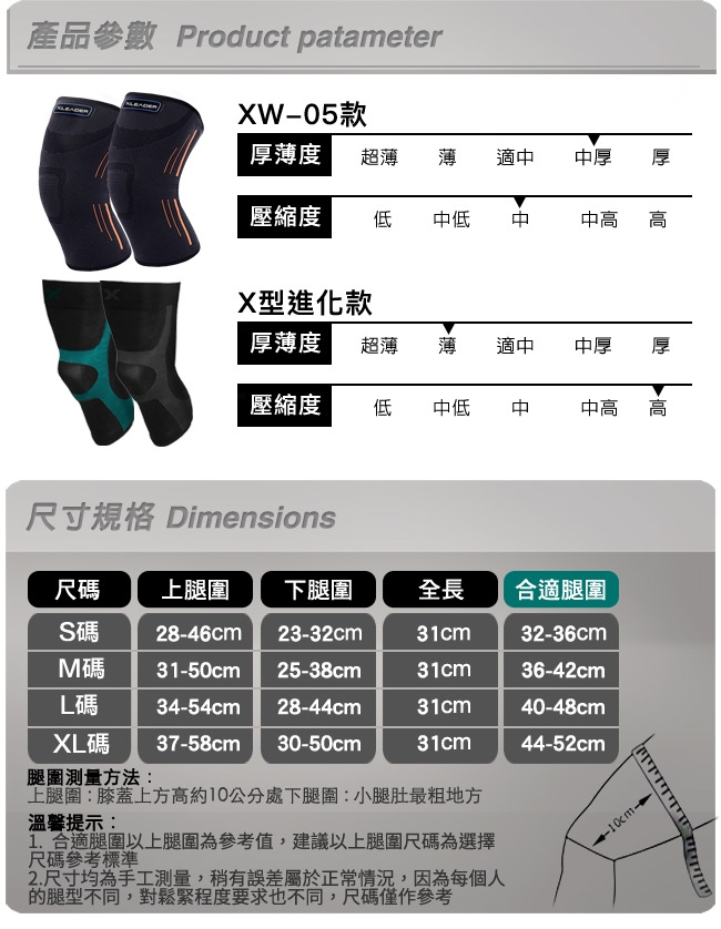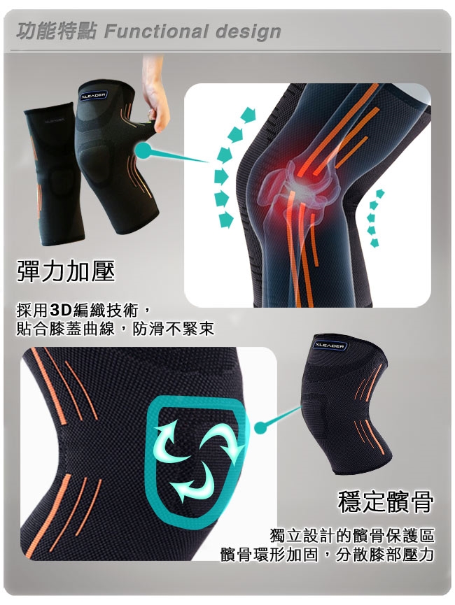LEADER XW-05 透氣加壓 運動壓縮護膝腿套