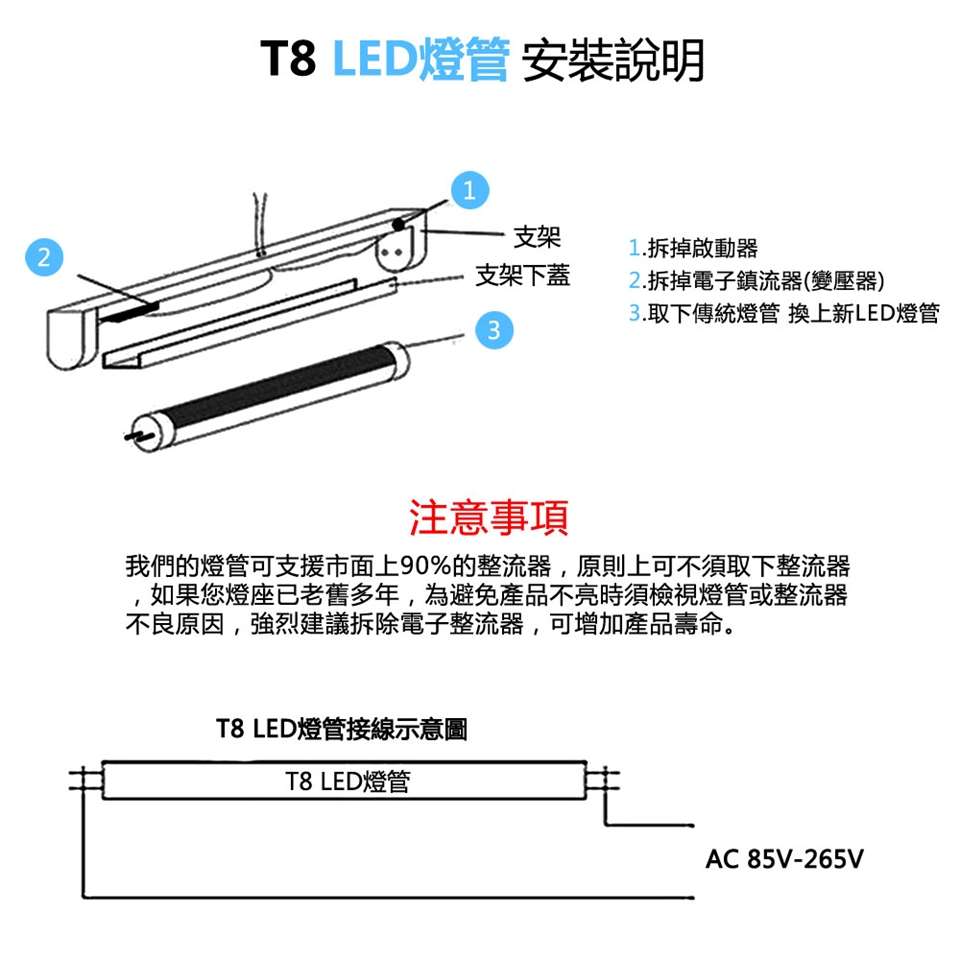 *安裝方式也可參考Youtube打關鍵字"LED燈管安裝".有相關教學影片.簡單易學.