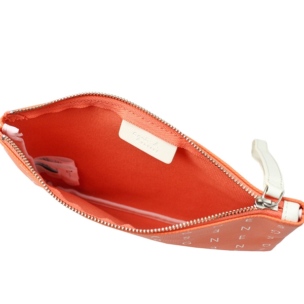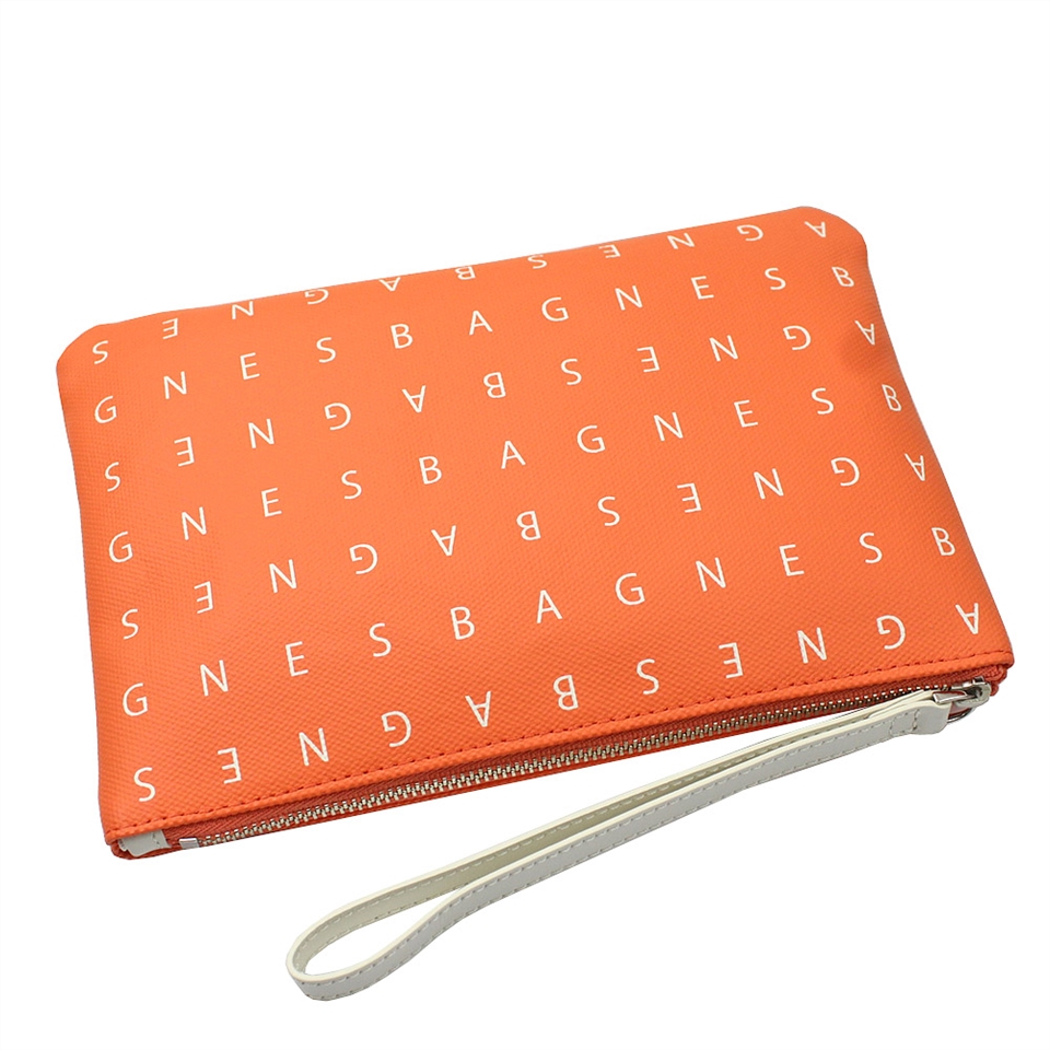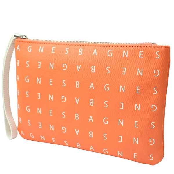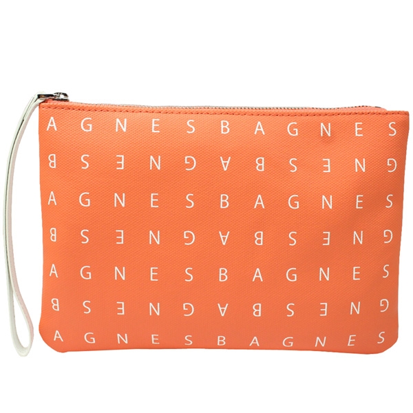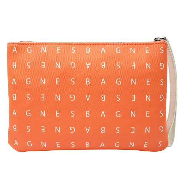 【agnes b.】滿版字母LOGO塗鴉手掛式萬用手拿包(小-粉橘色)