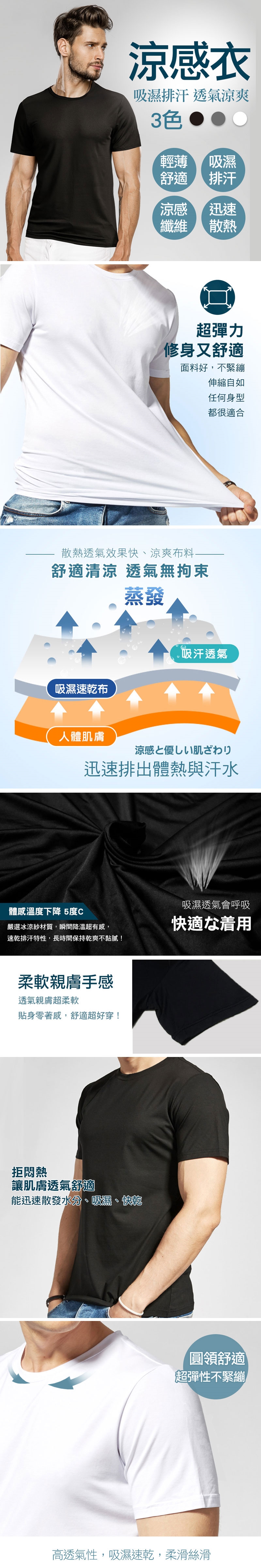 排汗機能涼感衣,柔滑親膚冰涼觸感,吸濕快乾效果好。