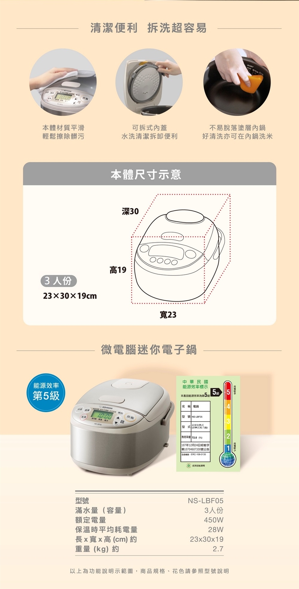 (6) 可炊煮白米、白米快速炊飯、什錦飯、稀飯、壽司飯、糙米飯。