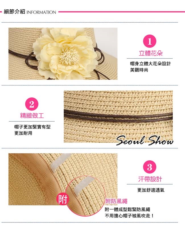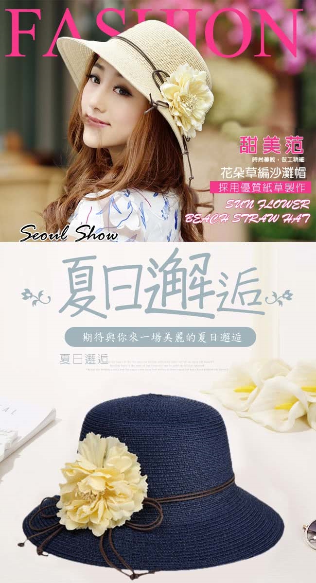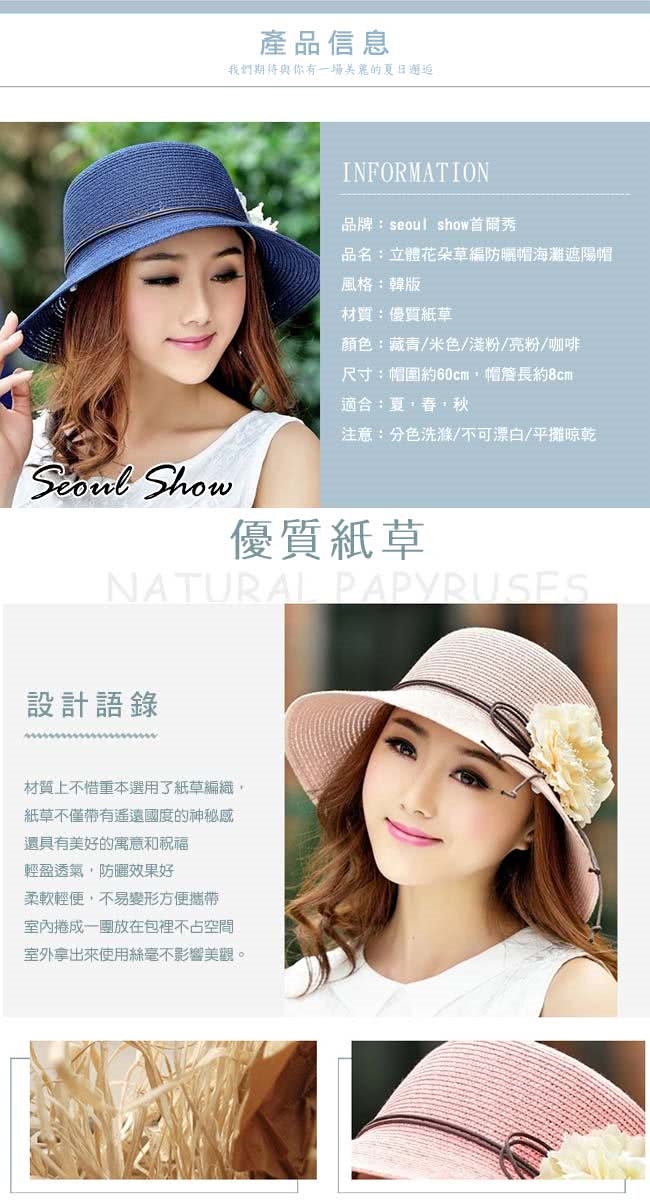 Seoul Show首爾秀 立體花朵草編防曬帽海灘遮陽帽