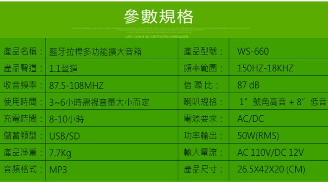 Dennys 拉桿式藍牙多功能擴大音箱 WS-660