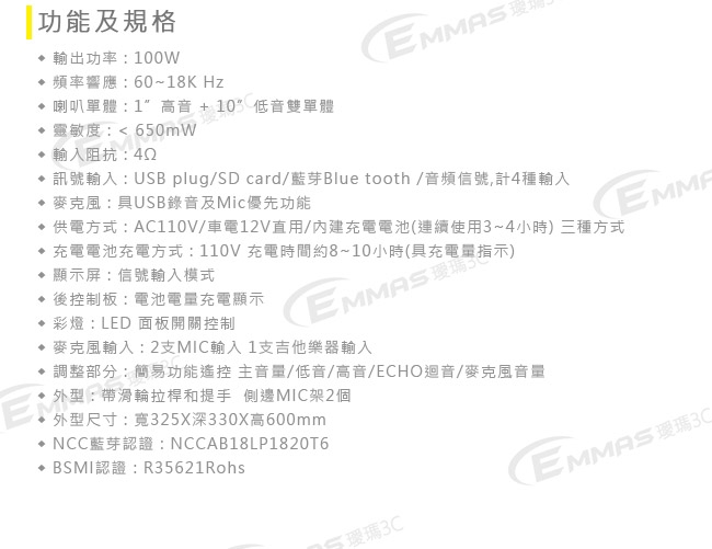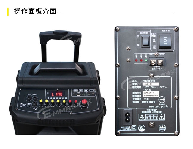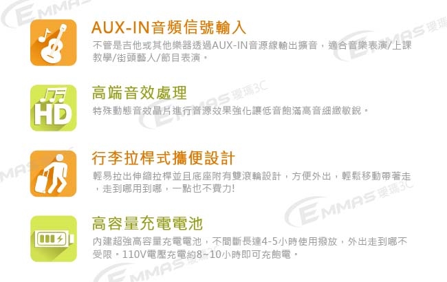 品名:行動藍芽拉桿式擴音音箱 無線麥克風版