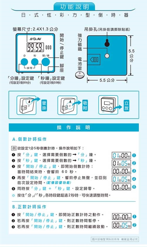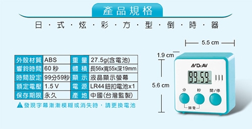 【Dr.AV】日式炫彩方型倒時器(TM-A45)