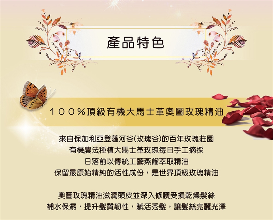 用法:洗髮後拭乾多餘水分,倒出適量於掌心,然後塗抹髮絲中間至髮尾部分,等待兩至三分鐘後以清水徹底洗淨,亦可免沖洗。