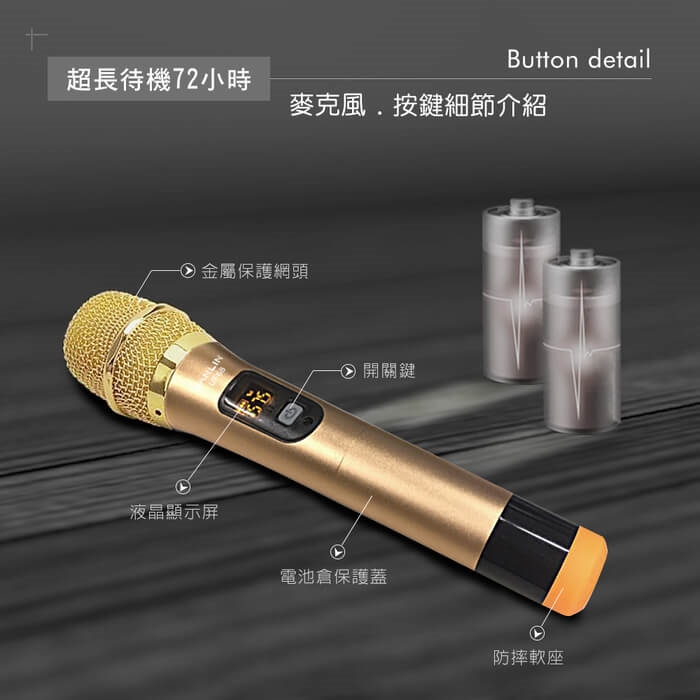 2.如有多隻麥克風同時使用時,請不要使用同一個頻道以避免互相干擾,請短按換頻按鍵