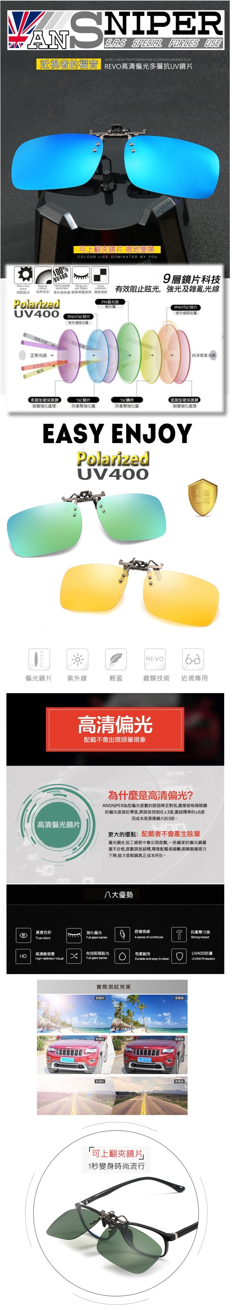 ●抗UV400高清REVO-HD保麗萊偏光片,非球面鏡片,成像真實