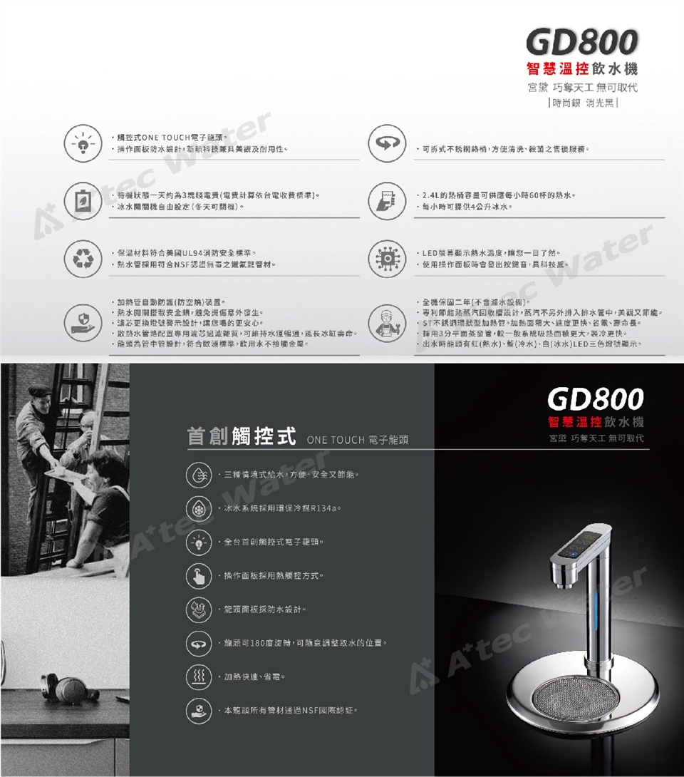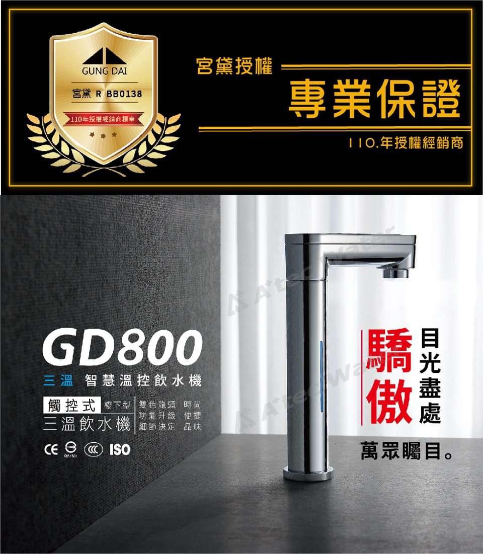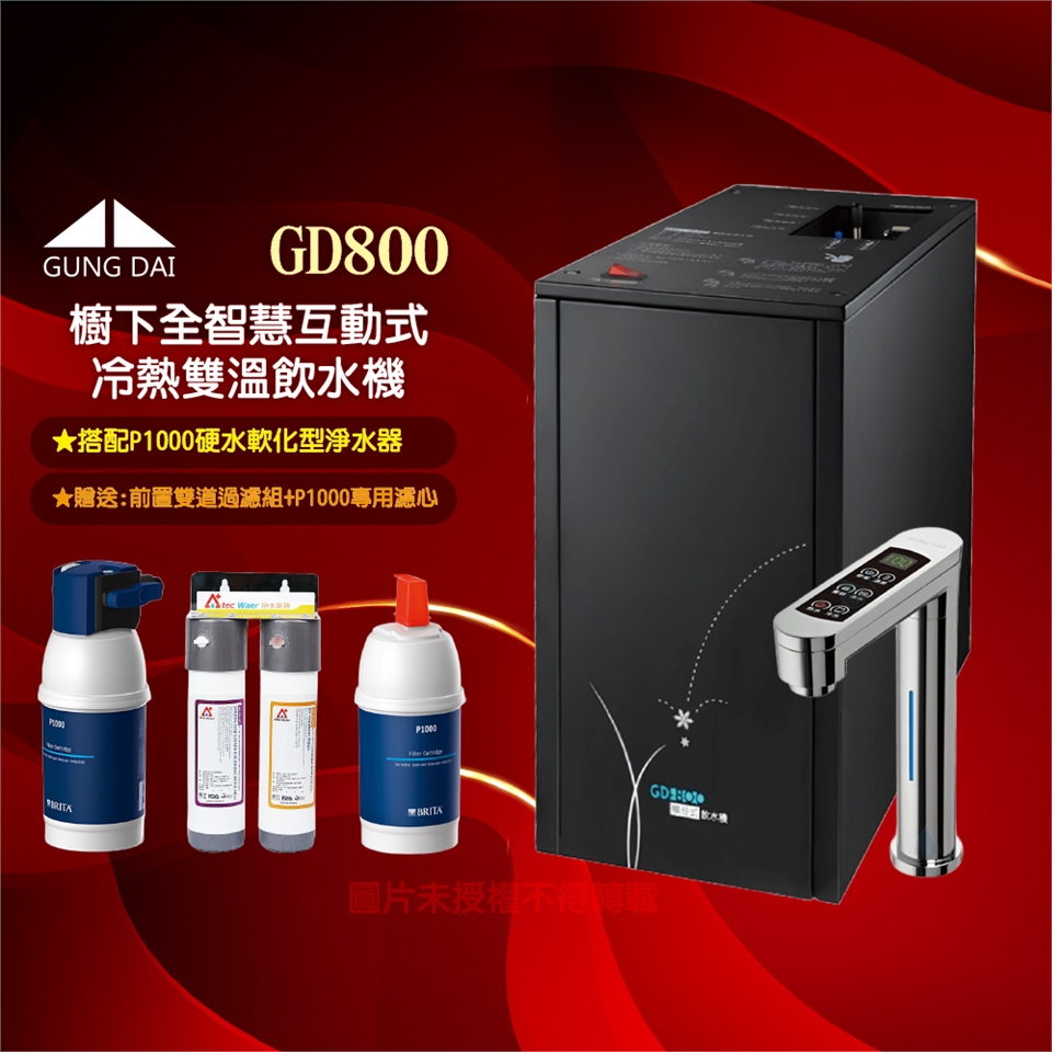【GUNG DAI】宮黛GD-800櫥下型觸控式三溫飲水機/熱飲機GD800+搭配BRITA P1000硬水軟化型濾水系統