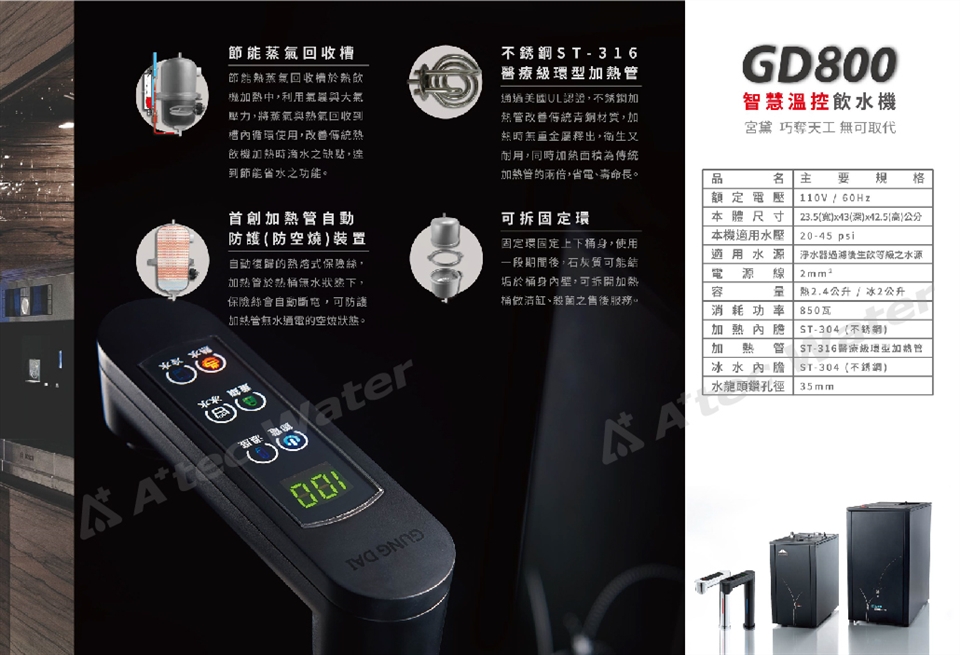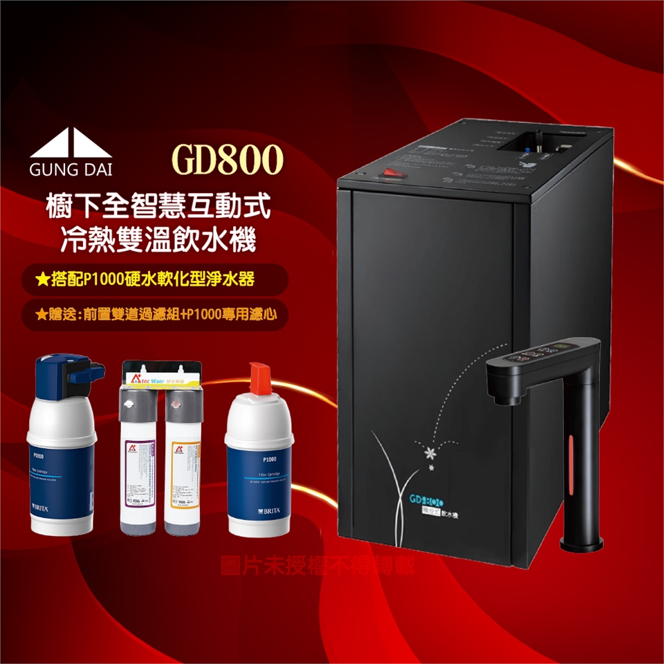 【GUNG DAI】宮黛GD-800櫥下型觸控式三溫飲水機/熱飲機GD800+搭配BRITA P1000硬水軟化型濾水系統