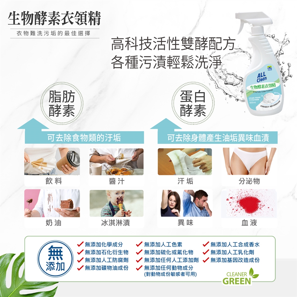 衣領精直接噴上衣領袖口髒汙處 較為髒汙的地方用手搓揉 再放入洗衣機清洗