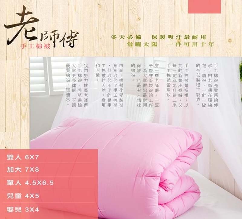 我們努力推廣老師傅手工棉被,
