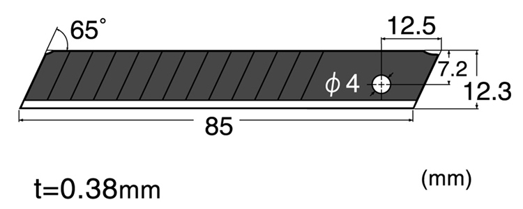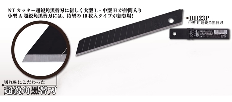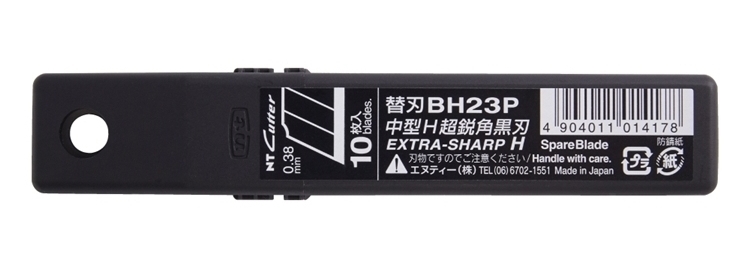 ●【品名】日本製NT Cutter中型H超銳角美工刀片BH23P替刃(10入,85°高碳鋼黑刃,刃厚0.38mm,刃付16°)適PMGH-EVO2 H-2P