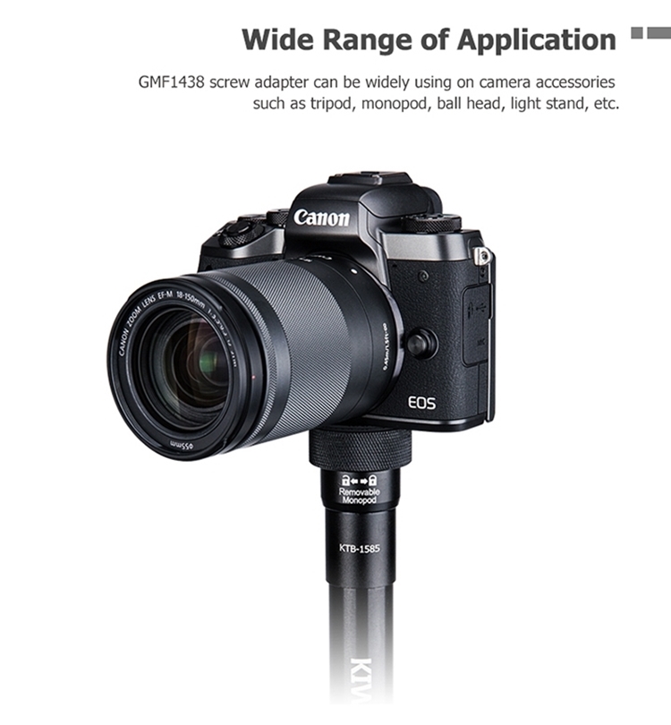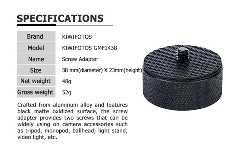 ●【品名】KIWIFOTOS螺牙轉接器螺紋連接器GMF1438(2分公轉3分母;即可將1/4"英吋母螺孔轉成3/8"英吋母螺孔)