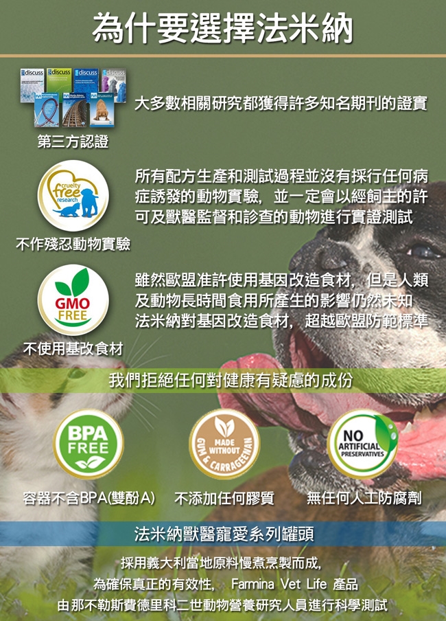不使用基改食材--雖然歐盟准許使用基因改造食材,但是人類及動物長時間食用所產生的影響仍然未知法米納對於基因改造食材,超越歐盟防範標準