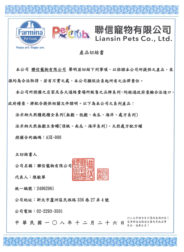 不作殘忍動物實驗--所有配方,生產和測試過程並沒有採行任何病症誘發的動物實驗;並一定會以經飼主的許可及獸醫監督和診查的動物進行實證測試